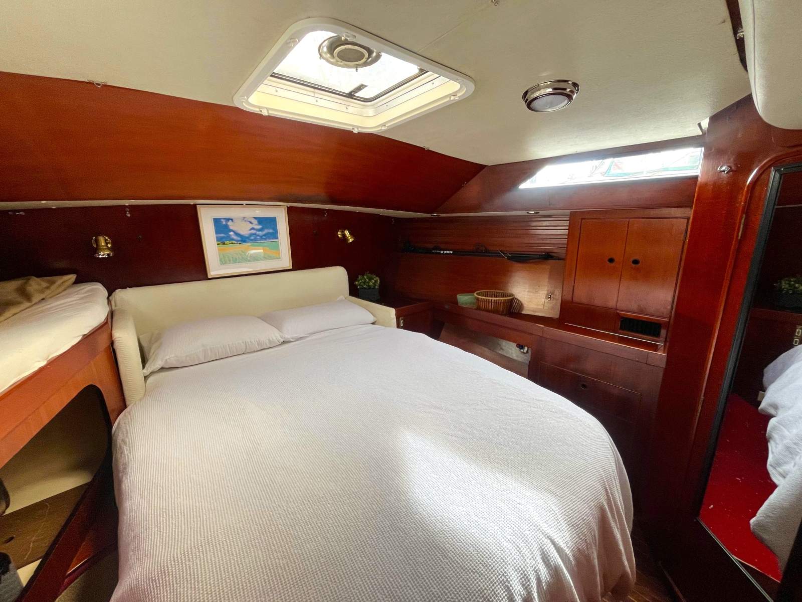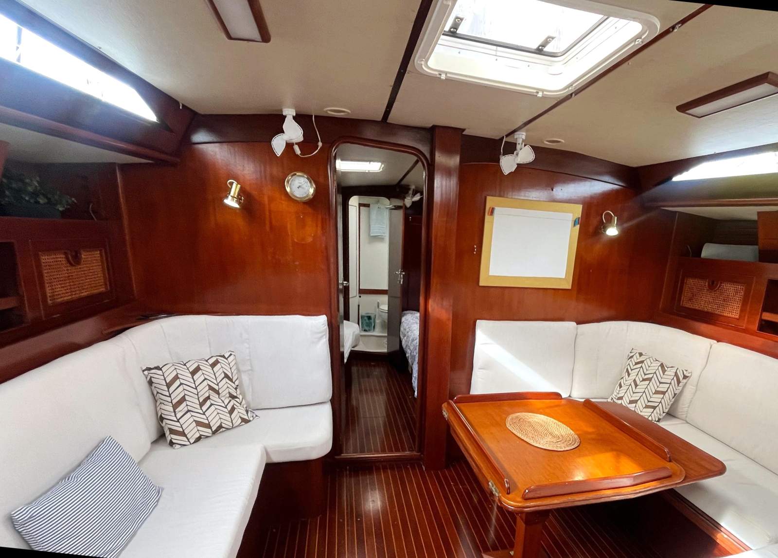 Sailing short-handed is easy, with hydraulic winches and furling systems offering effortless handling from the secure centre cockpit. Her standing rigging was recently replaced, adding to her offshore readiness.