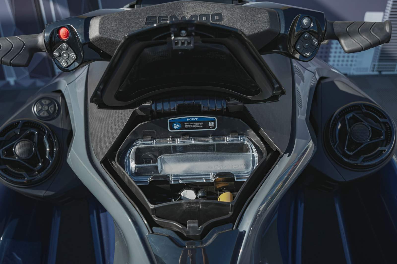 STORAGE - All your gear within arm's reach thanks to a 25.3 US gal (96 L) front storage area, easily accessible from a seated position. Simply raise the handlebars to access essentials for any adventure. A watertight compartment with integrated USB port allows your devices to stay charged - snug in an impact-absorbing, watertight cradle.