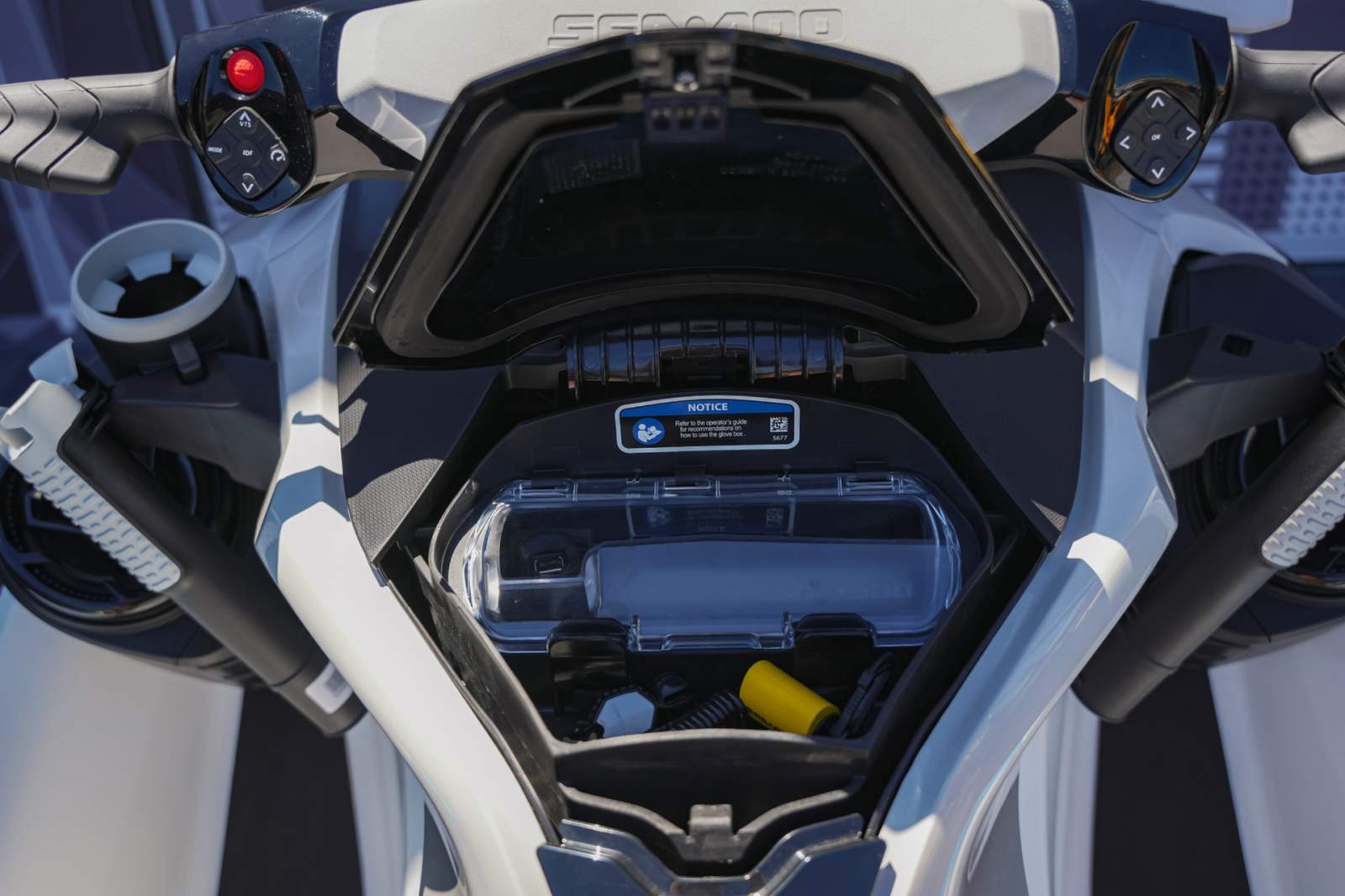 STORAGE - All your gear within arm's reach thanks to a 25.3 US gal (96 L) front storage area, easily accessible from a seated position. Simply raise the handlebars to access all the essentials for the day's adventures. Containers a bin organizer helps with the quick access items whilst a watertight compartment with integrated USB port allows your devices, to stay charged - snug in an impact-absorbing, watertight cradle.