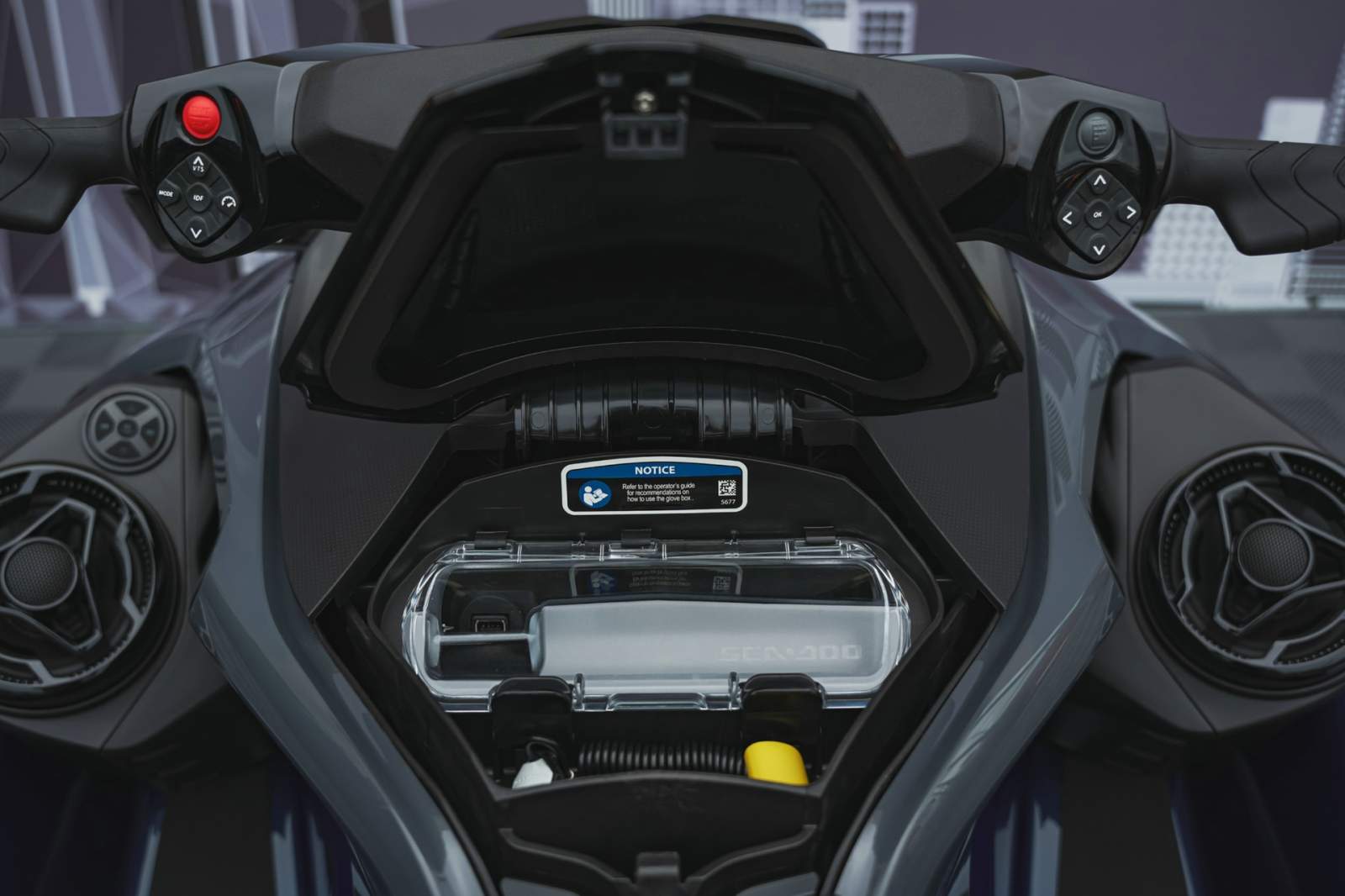 AUDIO-PREMIUM SYSTEM - Ride to your own beat with the 100W optional BRP Audio-Premium System. Waterproof, fully integrated Bluetooth sound with the remote pad on the left speaker, you can quickly change songs and volume.