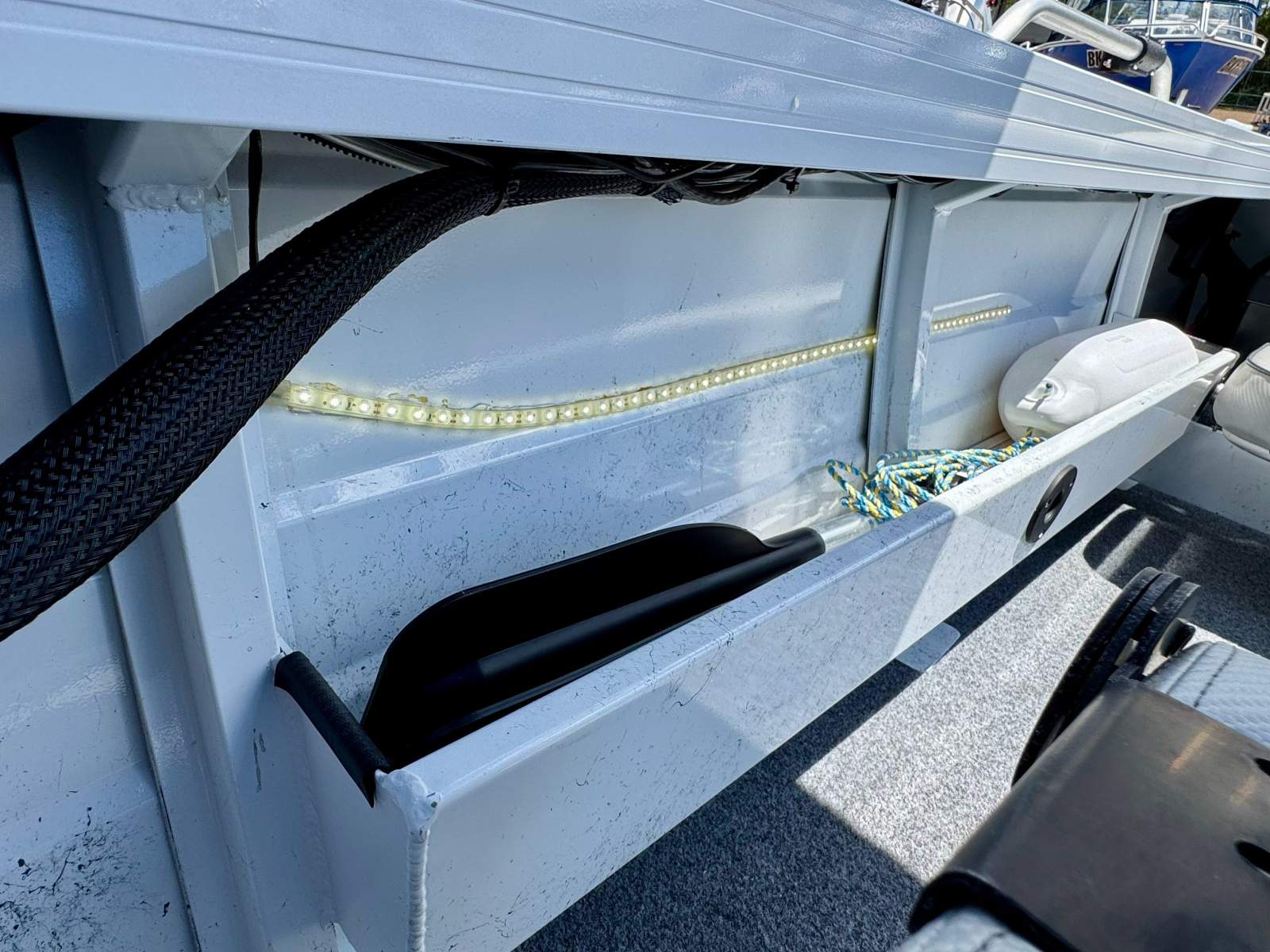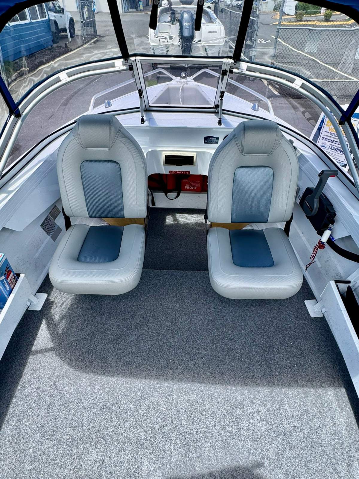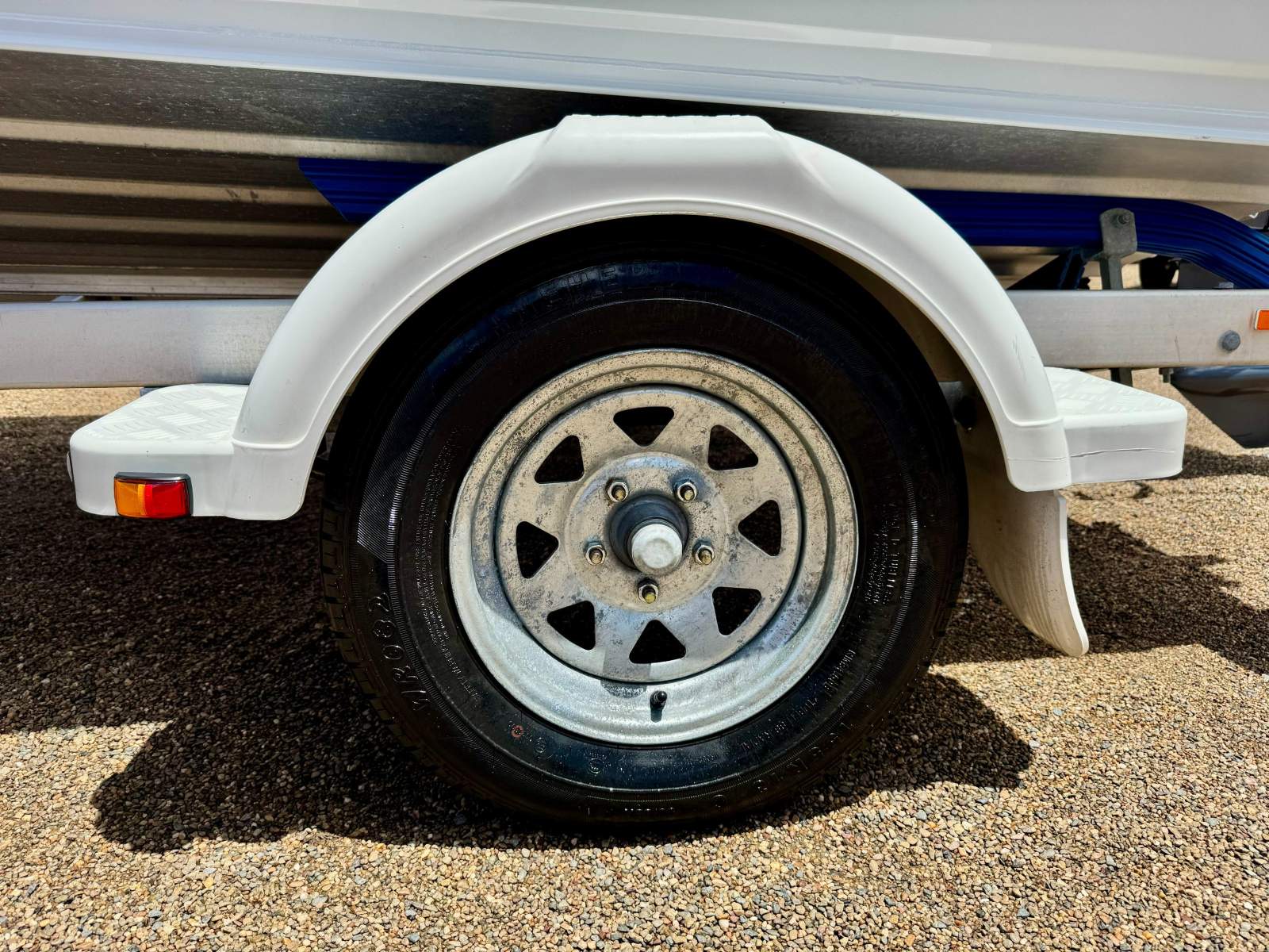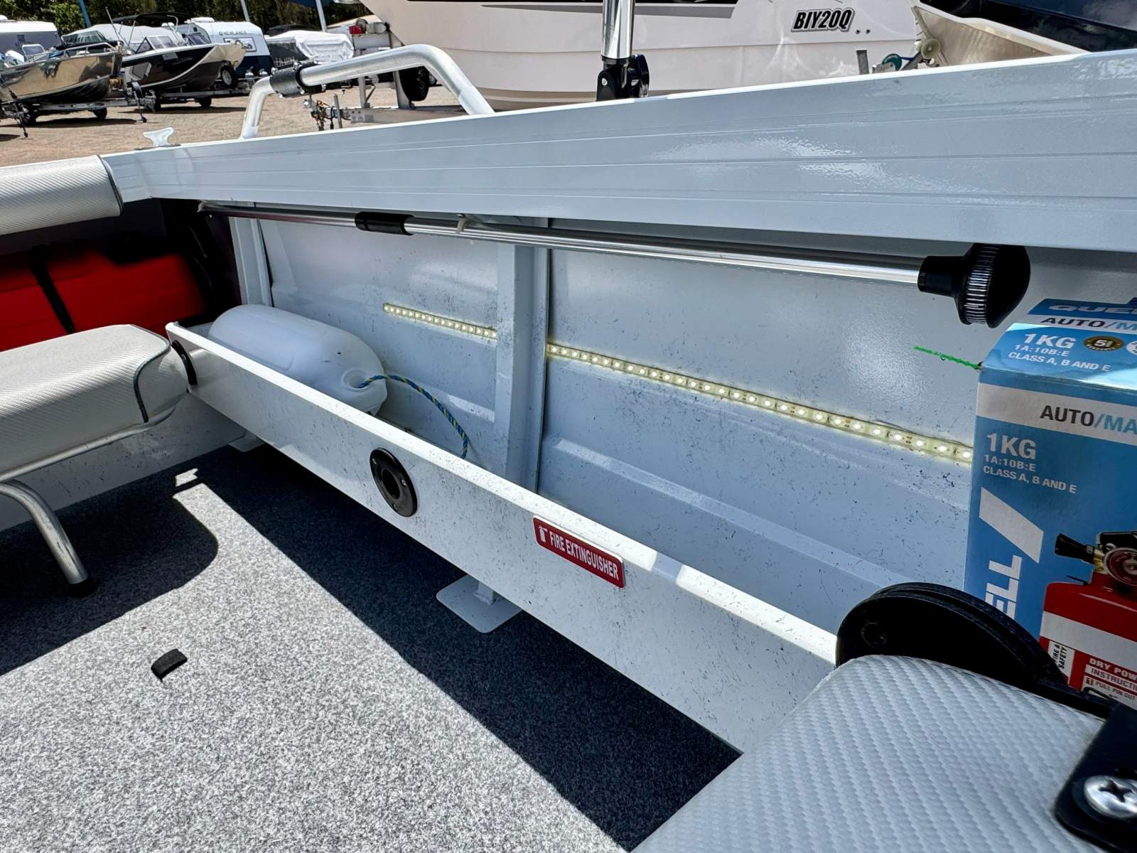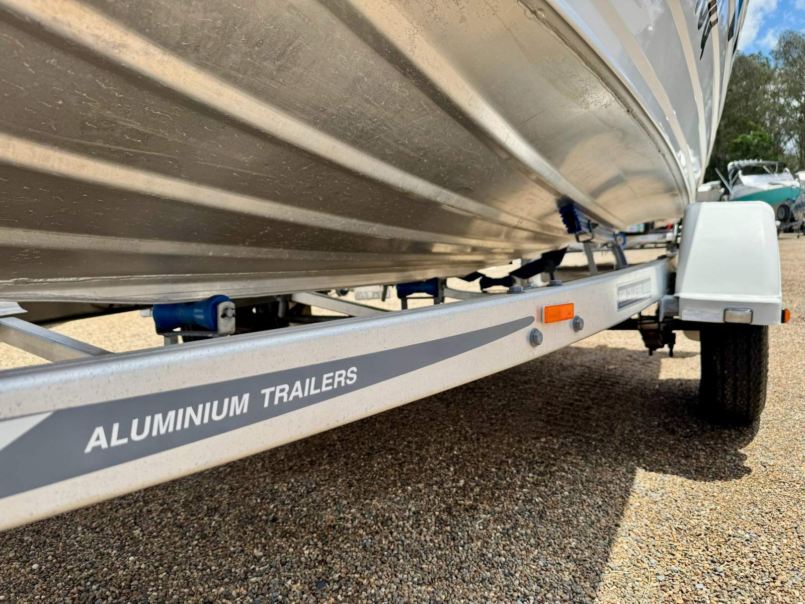 Trailering is made easy as the rig sits atop a Stacer Alloy TELASMALL2 aluminium framed trailer and marries to the hull like a glove. Dressed with white plastic guards and side lights, looking smart whilst sitting still.