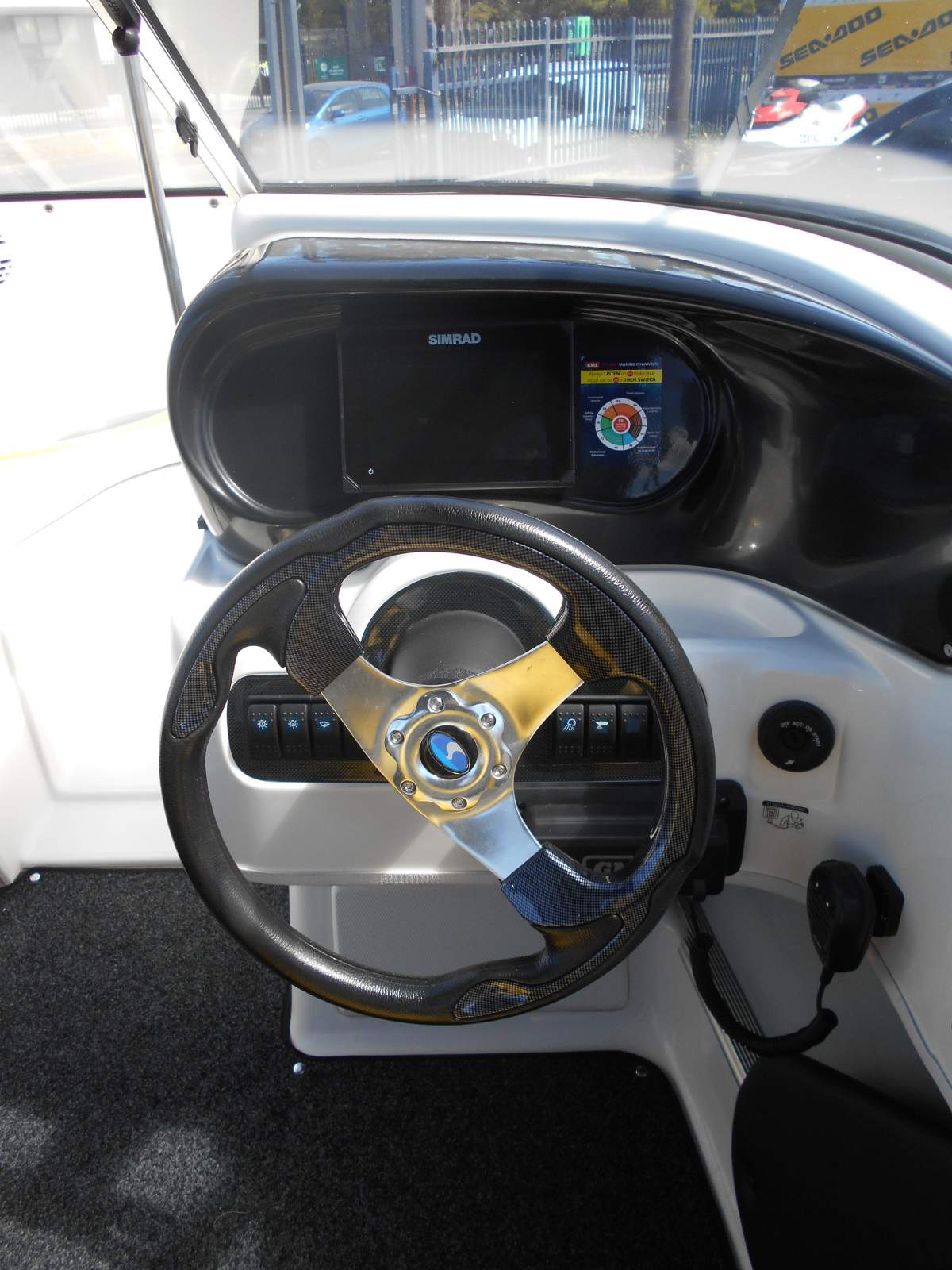 * Simrad Screen linked to Engine with large Stereo system.