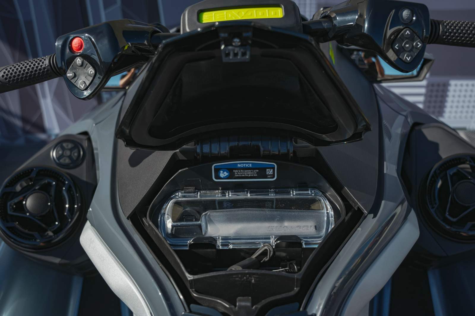 STORAGE - All your gear within arm's reach thanks to a 25.3 US gal (96 L) front storage area, easily accessible from a seated position. Simply raise the handlebars to access all the essentials for the day's adventures. A watertight compartment with integrated USB port allows your devices, to stay charged - snug in an impact-absorbing, watertight cradle.