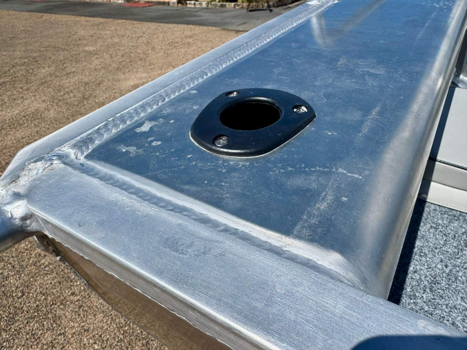 This boat features a heavy duty construction with smooth plate look sides, numerous ribs and wide gunwales with beautifully rolled edges, a bow casting platform with ample storage under along with a stern platform that houses the battery and portable fuel tank as pictured.